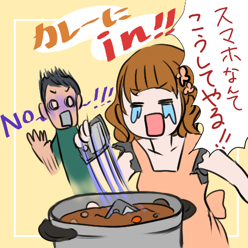 【怒りおさまらず彼のスマホをカレーの具材に】バイト先で浮気相手とイチャイチャしている彼に激高