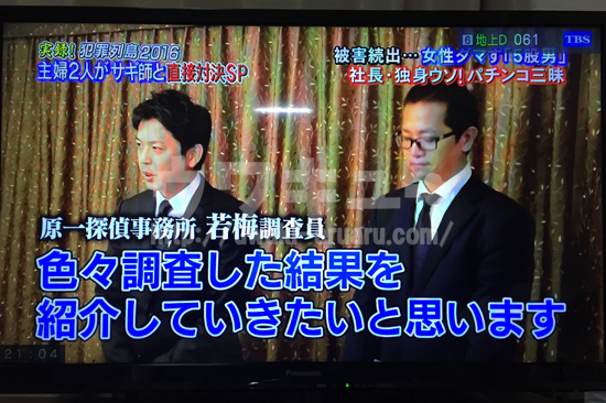 先日もTBSの番組で結婚詐欺師を追跡していました。テレビ出演されていのは、原一本社を取材させていただいた時に尾行テクニックを披露してくださった若梅さんでした。