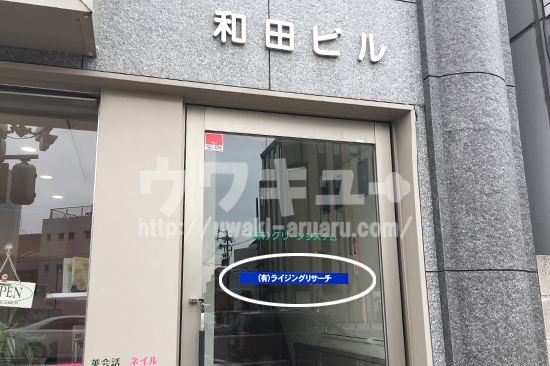 ライジングリサーチが入っている、和田ビルです。覚王山駅から徒歩2分で到着です。ガラス戸に「ライジングリサーチ」の表記があります。