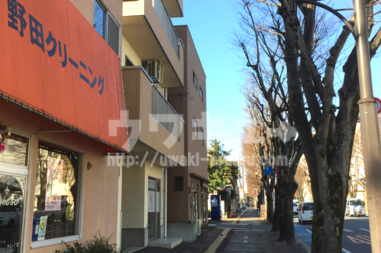 オレンジのテントはクリーニング店でした。ここからはしばらく直進です。