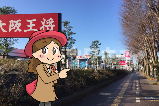 ハローワーク熊本から歩くこと5分、ゆめタウン大江が見えてきました。まだまだ直進です。